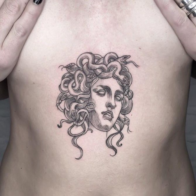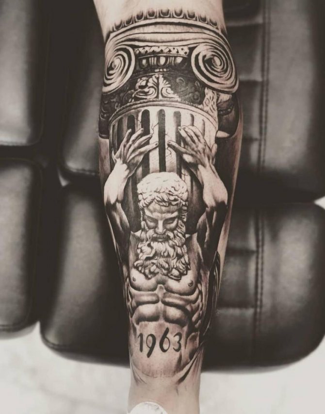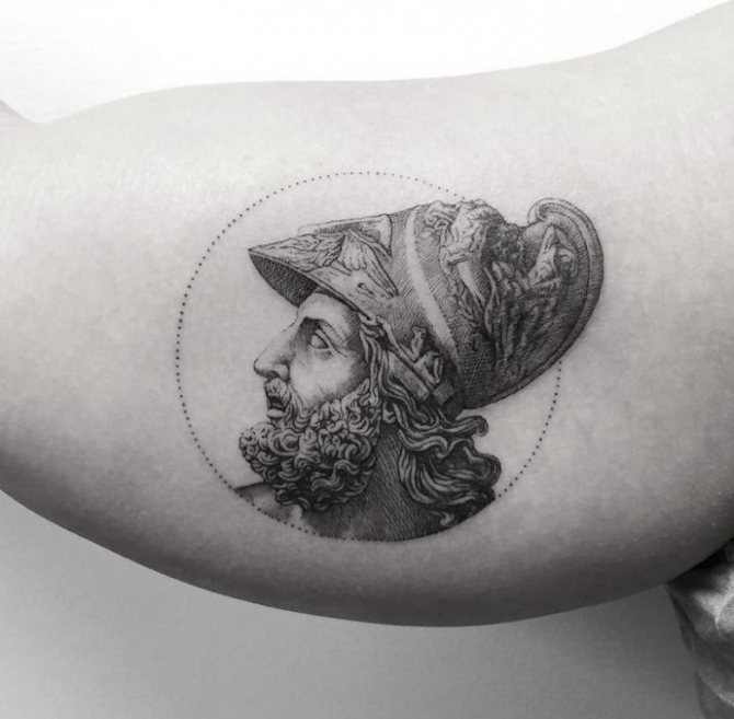 - Adoración del arte antiguo. En la época de la antigua Grecia se establecieron los cánones básicos que utilizan los artistas, escultores y arquitectos hasta hoy. Por lo tanto, el tatuaje de una escultura puede ser realizado por personas que se dedican a la creación;