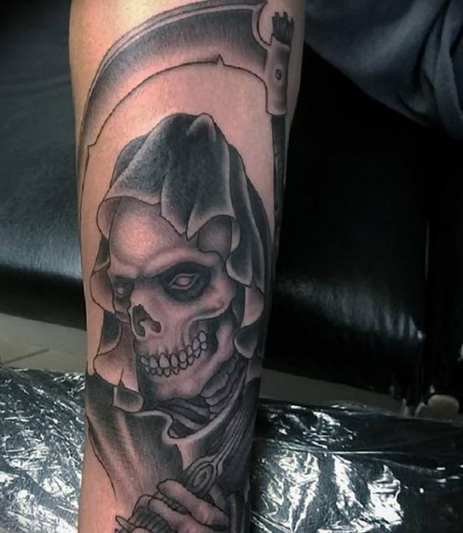 En diferentes culturas, el significado de dicha imagen es aceptado universalmente o tiene un significado individual. En las culturas civilizadas, la muerte se asociaba con la oscuridad, las fuerzas del otro mundo, la noche y la tierra. Por eso, la mayoría de las veces se representa en negro. Tras estudiar los bocetos de varios salones, puede convencerse de que esta tendencia ha llegado hasta nuestros días.