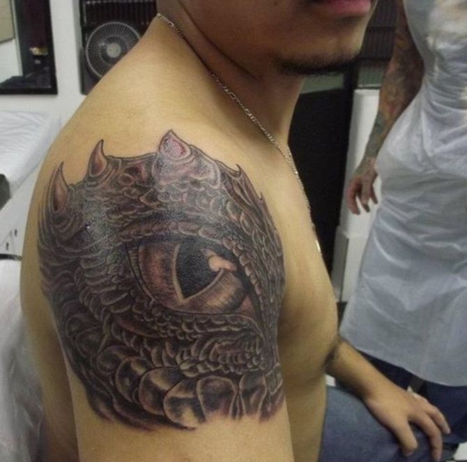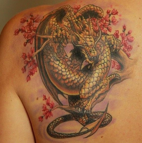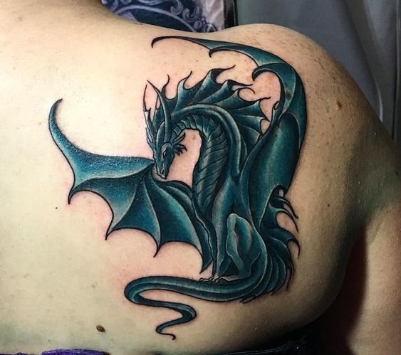 Tatuaje de un dragón en el omóplato de un hombre