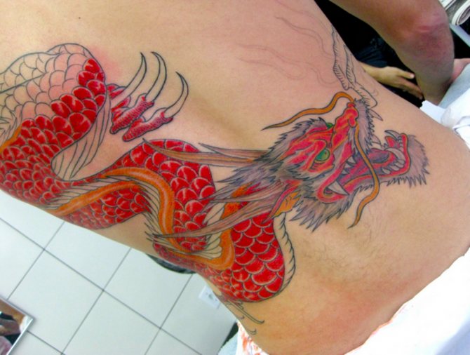 Un tatuaje de dragón también nos pone bajo su protección. Esta era la intención de los tatuajes de los bomberos. Las mujeres utilizan los tatuajes para proteger a sus familias.