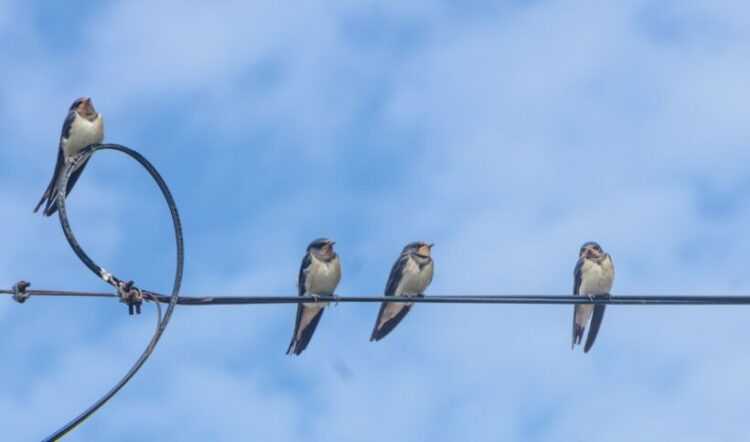 Las especies de golondrinas se parecen en que las aves suelen formar grupos para vivir juntas.