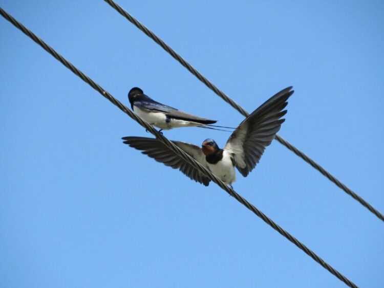 Si una golondrina es atacada por un depredador, todas las aves comienzan a chillar e intentan ahuyentar al enemigo y confundirlo. En algunos casos, estos pequeños pájaros pueden incluso ahuyentar a los grandes depredadores, como los zorros.