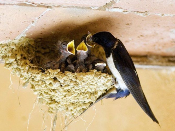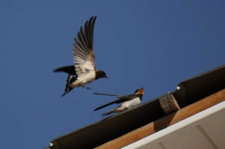 - Las golondrinas que viven en la ciudad no tienen miedo de los humanos. Suelen instalarse bajo los aleros de las casas y en los balcones.