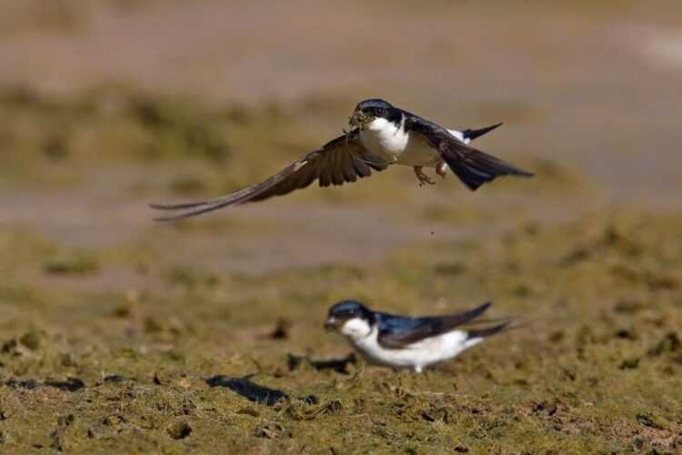 La mayoría de las fotos muestran a las golondrinas en vuelo, o en las proximidades de un nido en forma de globo. Esto puede explicarse por el hecho de que estas pequeñas aves pasan la mayor parte de su vida volando.