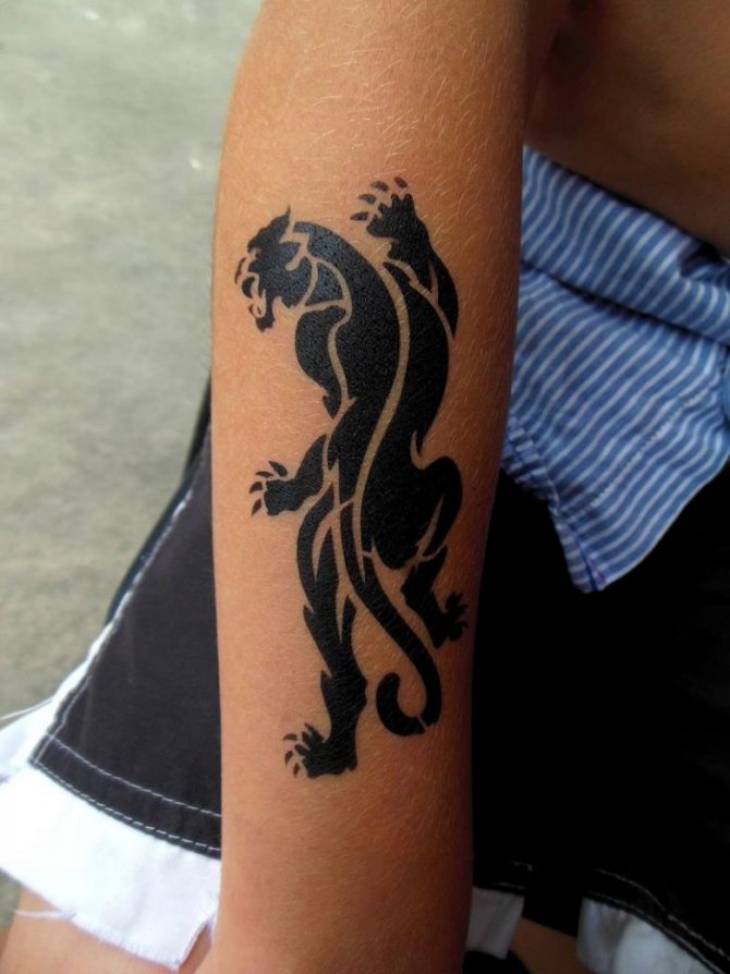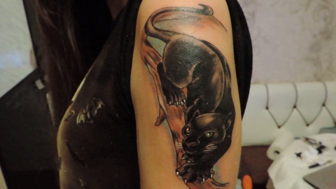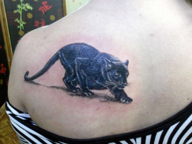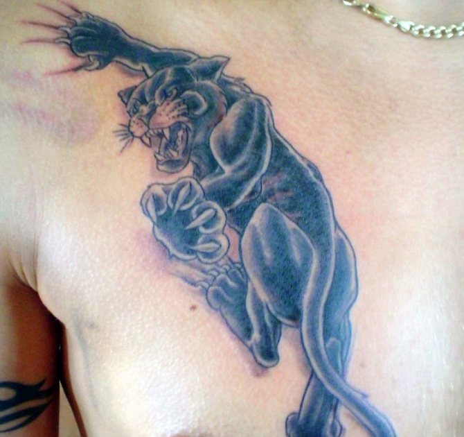 El significado del tatuaje pantera tiene sus raíces en la antigüedad. Este animal atraía a la gente por su belleza, su fuerza mental y su gracia. En la imagen de un gran gato negro detener la elección en la mayoría de los casos, las mujeres en lugar de los hombres. El tatuaje ayuda a las mujeres a acentuar su sexualidad, independencia, gracia y feminidad dominante, ya que la pantera es un poderoso símbolo de domesticidad. Las mujeres que eligen la pantera como joya, por regla general, se "arrancan la cabeza" por sus familias, hijos y seres queridos.