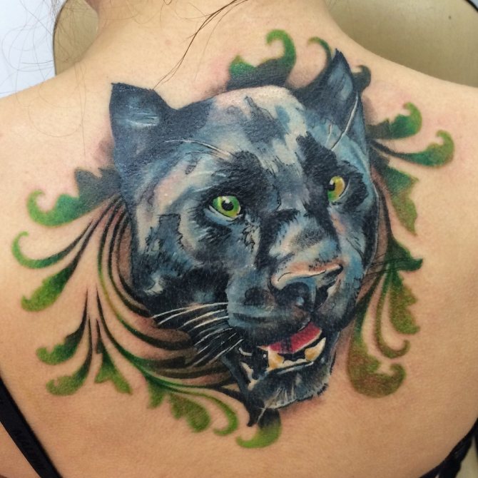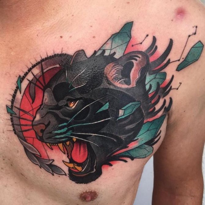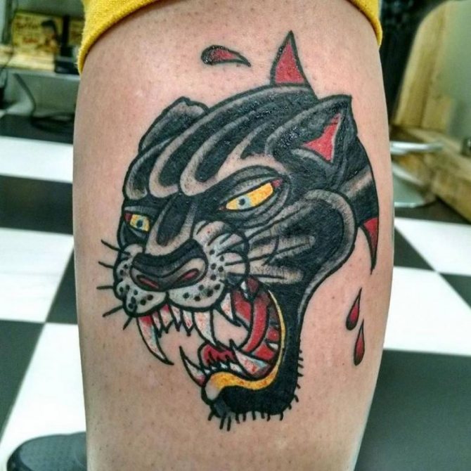 La cabeza de pantera de la vieja escuela se encuentra comúnmente en los machos. Se añaden a la composición elementos adicionales como letras, marcos y flores. Muy impresionante mira panteras tatuaje en la escápula, el antebrazo, en la espalda, en la mano en el estilo de la tribu. Una pantera rosa de dibujos animados en la nueva técnica de la calavera parece divertida. En este tipo de tatuaje es mucho menos agresivo y más positivo. En la galería se pueden ver interesantes ideas de tatuajes y elegir la opción adecuada.