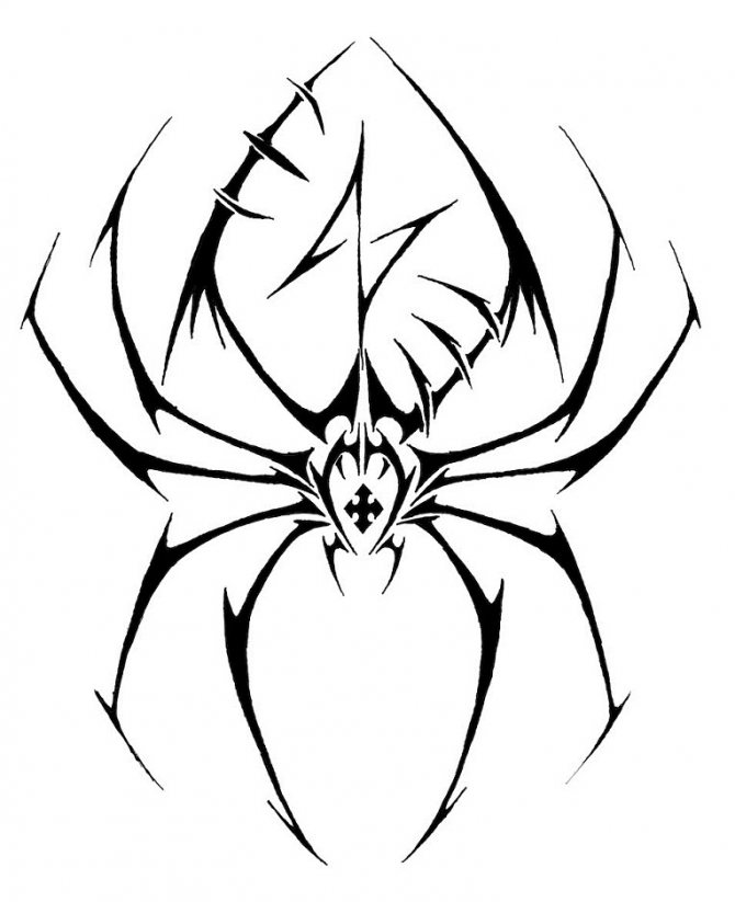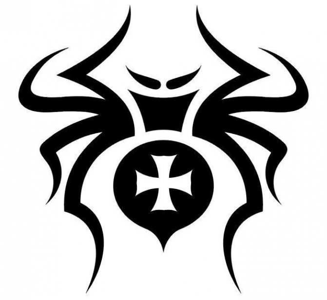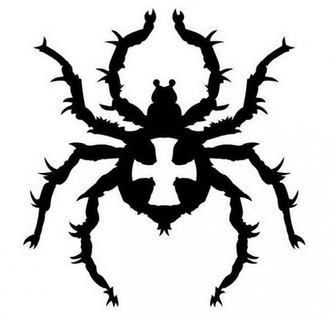 Importante: En el pasado, el dibujo de una araña en una tela de araña era un símbolo del "general de los bajos fondos", el líder que crea la red criminal. La aplicación no autorizada de dicho tatuaje era muy peligrosa, ya que al ir a la cárcel, el portador tenía que responder por la apropiación de no debido a la condición de regalia. Sin embargo, hoy en día este significado es cosa del pasado.