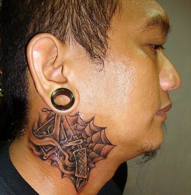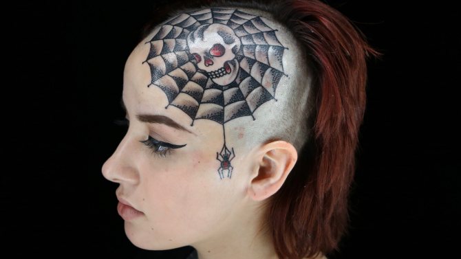 Un tatuaje con una tela de araña rara vez se coloca en la cabeza.