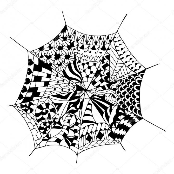| Obra negra | Requiere el uso de tinta negra y se considera la variante más común de crear un patrón de tela de araña. |