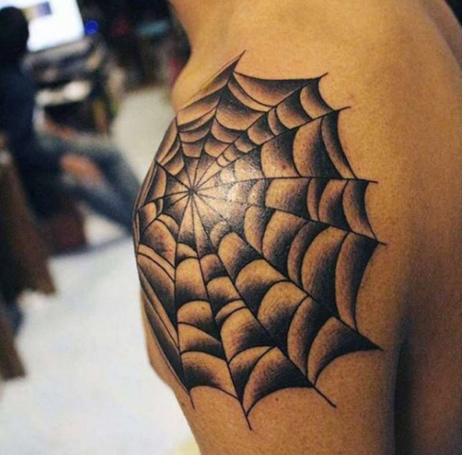 Gracias a una variedad de líneas finas y gruesas, el tatuaje de telaraña tiene un aspecto atractivo y voluminoso que hipnotiza a todos los que lo rodean. La razón principal de la popularidad de este tipo de uñas es la ausencia de efecto, completamente bloqueado cuerpo tatuado, como en su creación de la piel no está completamente cubierto, y para crear un boceto de la futura obra maestra bajo la fuerza incluso a la persona que no tiene talentos artísticos. Lo más frecuente es ver una imagen de este tipo en un codo o un hombro, pero a veces se utilizan para decorar una pierna, la espalda o el pecho.