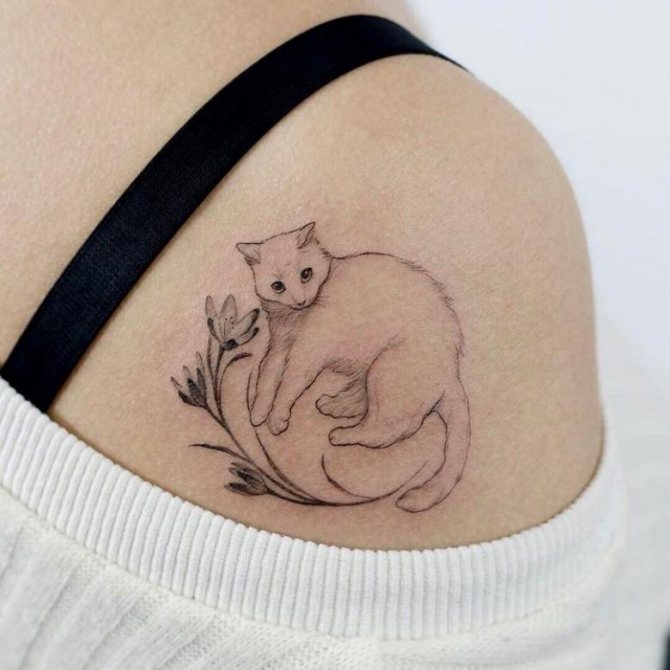 A menudo las chicas se hacen un tatuaje en el cuello, la muñeca y el tobillo. Las imágenes pequeñas tienen un aspecto muy elegante y estilizado. Los gatos también se dibujan detrás de la oreja, en la clavícula, el antebrazo, la escápula, el centro de la espalda, la parte baja de la espalda, el muslo, las pantorrillas e incluso en el pie.
