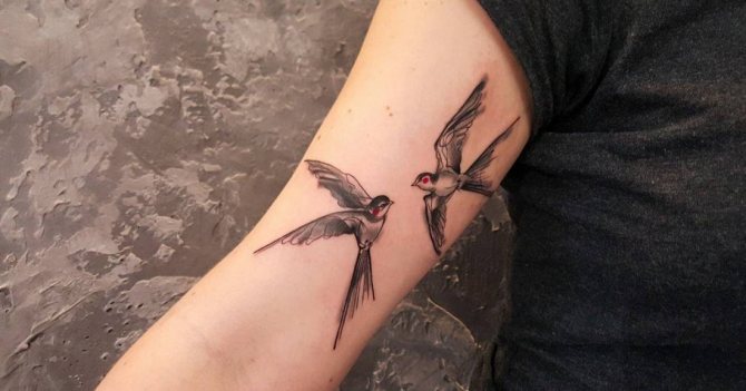 A los jóvenes les gusta poner el significado de la libertad y la fuerza de espíritu en la imagen de una golondrina. Estas aves se representan con las alas abiertas en vuelo.