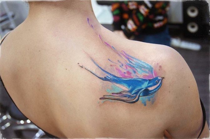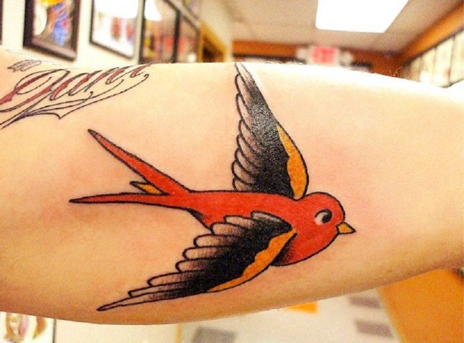 Golondrina en vuelo - La forma más popular de representar un tatuaje, que significa las aspiraciones de un hombre a la libertad, la independencia interior y exterior.