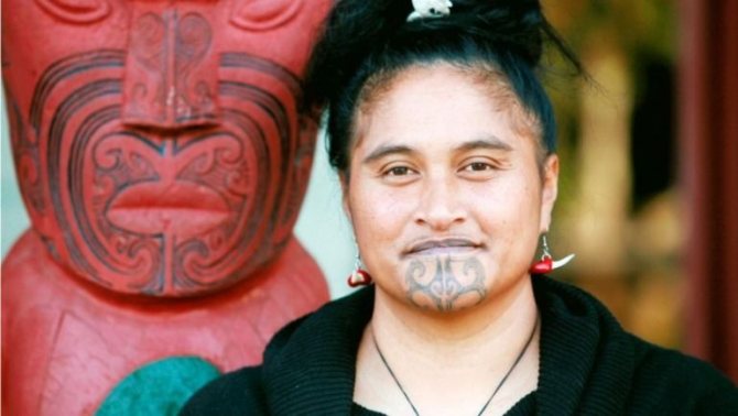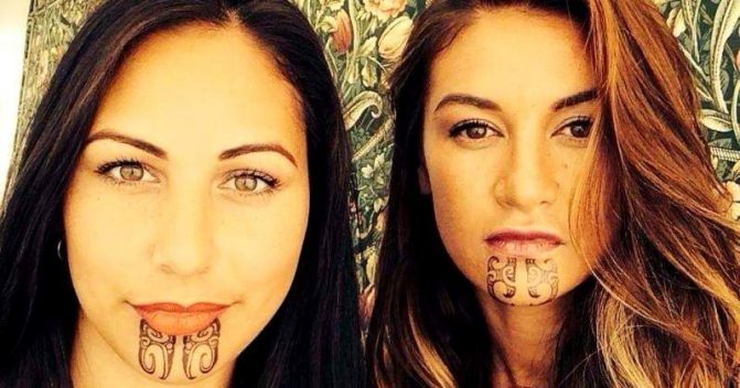 Incluso hoy en día, se pueden encontrar bellezas que lucen diseños místicos maoríes en sus rostros. Para muchas chicas polinesias, una "barba" tatuada bajo el labio tatuado era un signo de adultez. Un tatuaje en la barbilla de las chicas del siglo XXI es un homenaje a la moda juvenil.