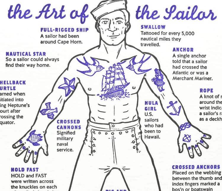 A finales del siglo XVIII, los informes navales muestran que alrededor de un tercio de los marineros británicos y una quinta parte de los estadounidenses tenían al menos un tatuaje, mientras que otros informes muestran que a los marineros de las armadas francesa, alemana y escandinava también les gustaba hacerse tatuajes.