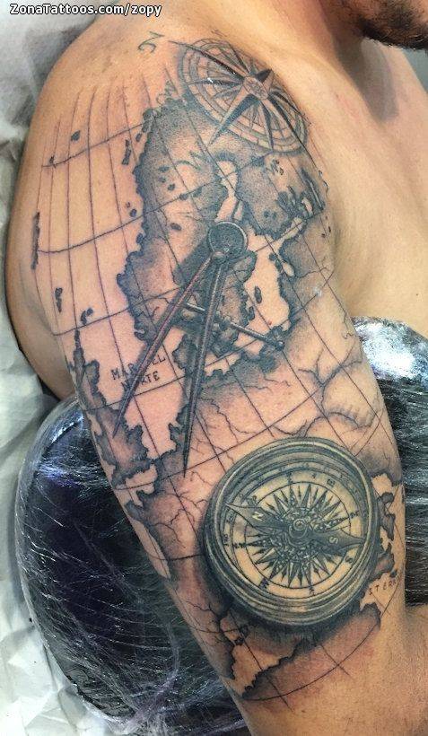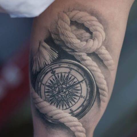 Este diseño de tatuaje es una buena forma de transmitir que formas parte de la Marina. La brújula está flanqueada por la bandera del barco, la calavera y citas inspiradoras. La brújula indica la dirección del barco y el simbolismo de la calavera representa los peligros asociados a sus vidas.