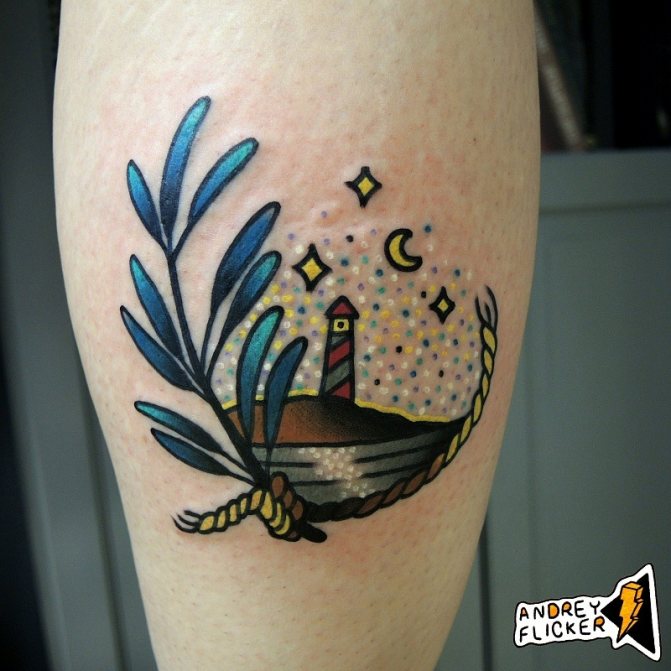 Las opciones más populares son el barco fantasma "Flying Dutchman" con sus velas de tela de araña específicas, el famoso barco pirata "The Black Pearl", numerosos diseños minimalistas, naufragios con un fondo de arrecifes y habitantes submarinos, barcos en una tormenta, la puesta de sol y muchas otras ideas. Los diseños pueden ser pequeños y monocromos o, por el contrario, pueden ser coloridos y mostrar multitud de detalles. Los tatuajes femeninos suelen complementarse con bellas inscripciones de amor, flores y motivos florales. Los tatuajes para hombres incluyen faros, brújulas, mapas, catalejos y muchos otros atributos de marineros y viajeros.