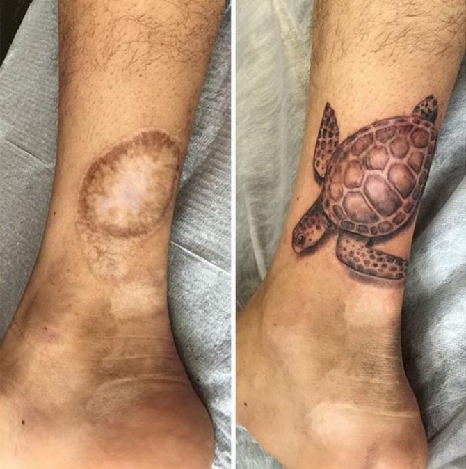 Está permitido aplicar tatuajes de diferentes tamaños en los lugares de las marcas de nacimiento eliminadas. El tipo y la forma correctos del tatuaje ocultan la cicatriz después de la cirugía y disimulan el defecto estético.