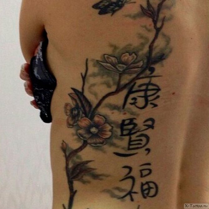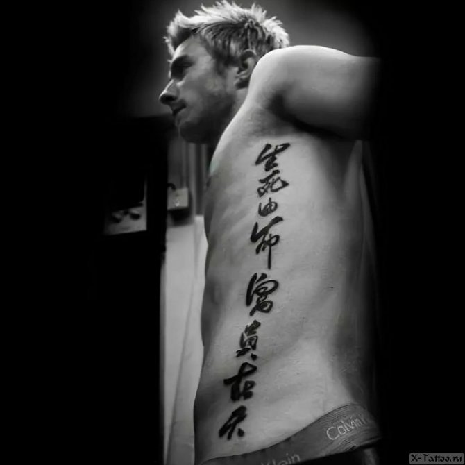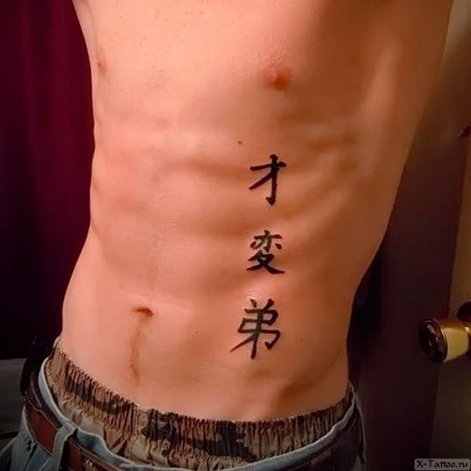 En el torso, la colocación suele depender del sexo. Las chicas prefieren colocarlos en las clavículas, bajo los pechos o en los costados y costillas. Este último, por cierto - un gran lugar para alguna gran cita o una larga frase inteligente, el significado de los cuales en ruso sólo conoce.