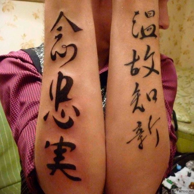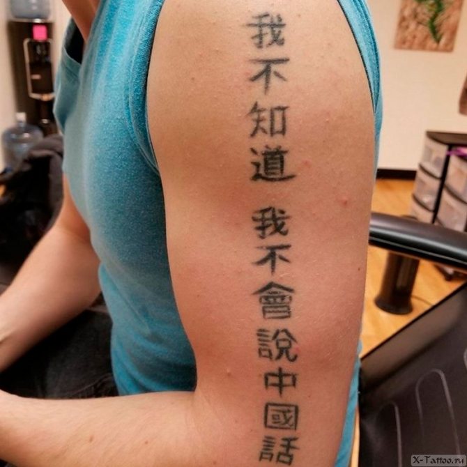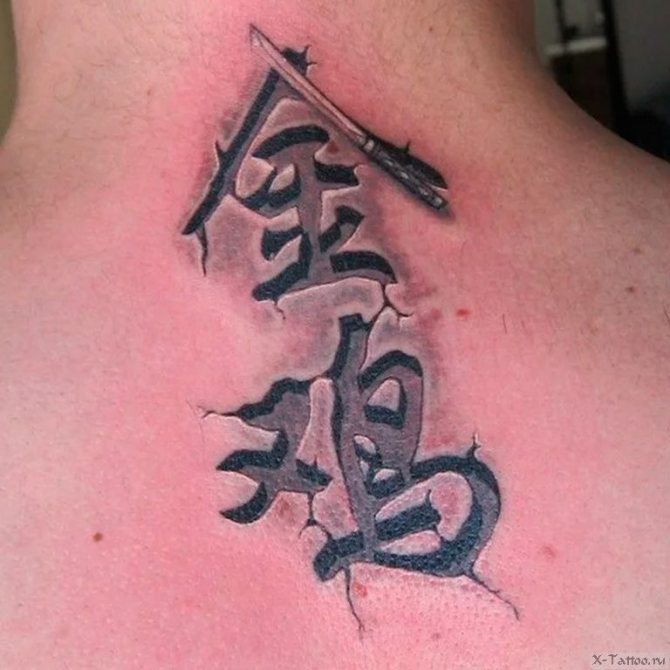 Pero también hay una gran desventaja. Es fácil escribir mal un carácter. Especialmente cuando hay varios de ellos que conforman una inscripción completa. Del mismo modo, es posible equivocarse con la traducción. Hay muchas fotos en Internet de tatuajes cuyo significado difiere del que se pretendía.