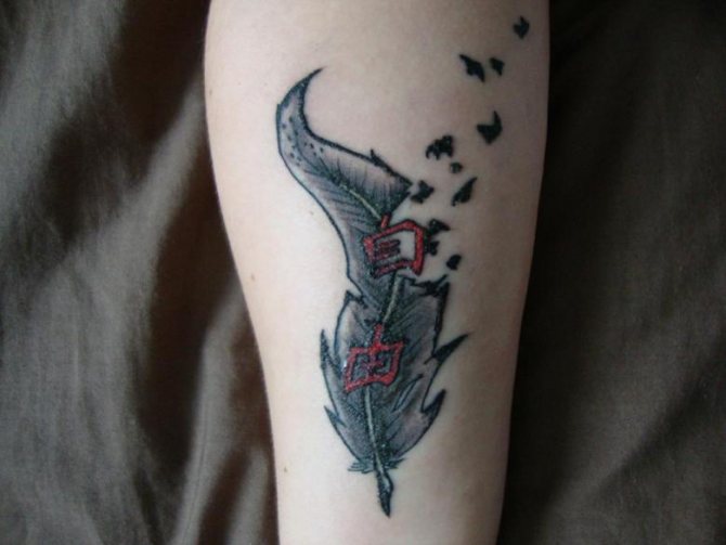 Así es como la libertad de viajar se retrata en los pies. Para ello, se selecciona un lugar adecuado en cuanto a tamaño y composición. La libertad de relación tiene un lugar en el antebrazo, el hombro y la escápula.