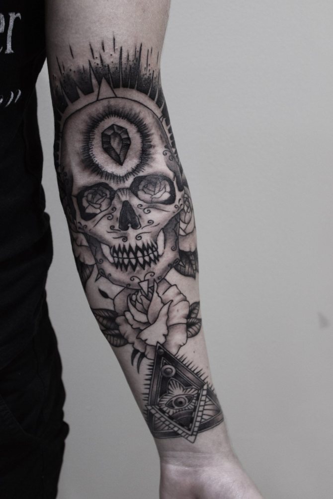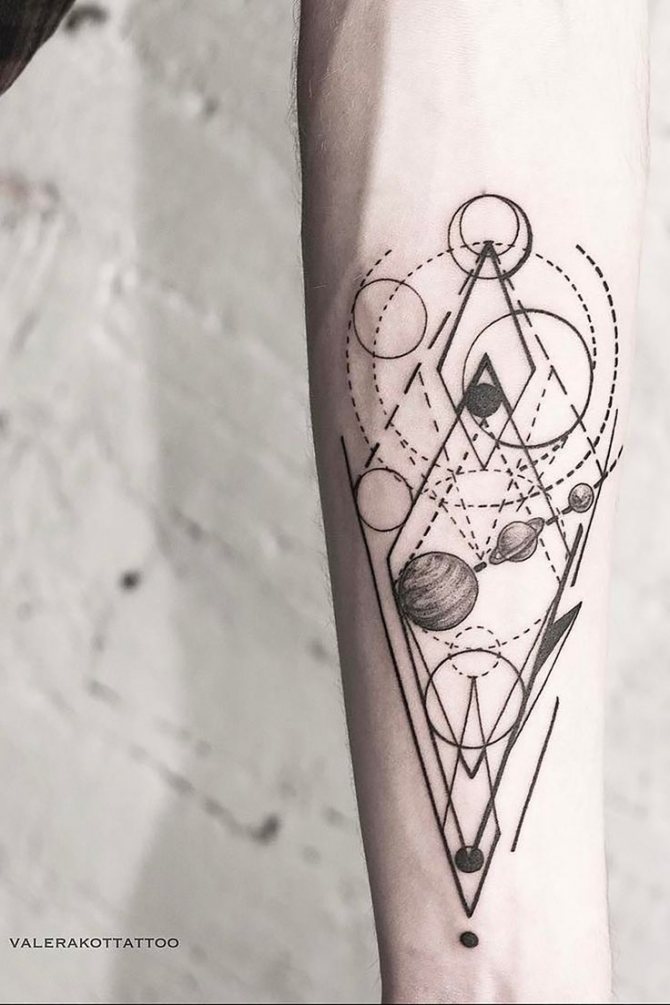 En el antebrazo, tanto en el interior como en el exterior del brazo, se prefiere el espacio libre completo. La imagen tiene forma trapezoidal, oblonga, rectangular u ovalada. Pero también el tatuaje puede ser estrictamente geométrico en forma de círculo o cuadrado.