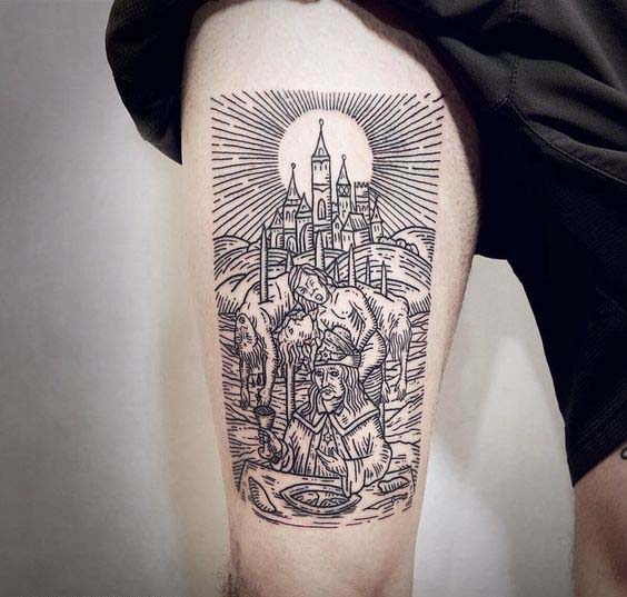 A veces los tatuajes gráficos se basan en historias de la literatura, la pintura y la escultura.