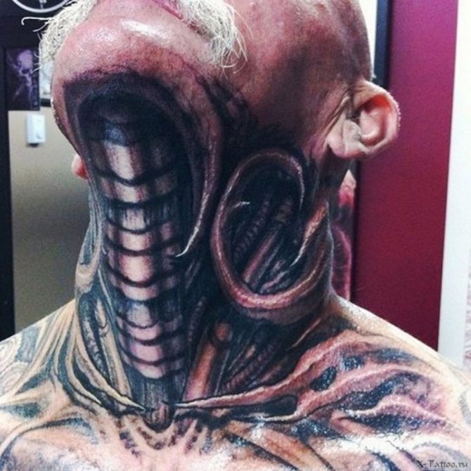 Al igual que el codo, esta es una parte del cuerpo muy resentida en cuanto a tatuajes. Por eso las chicas no suelen tocarlo, y el cuello se convierte en una zona de hombres. Aquí, o bien un único dibujo en el lateral que cuente la historia del hombre o algo muy llamativo: un biomech o un blackwork. Estoy de acuerdo, un cuello completamente negro parece bastante llamativo. Y a veces hacen motas blancas en él, lo que también es llamativo.