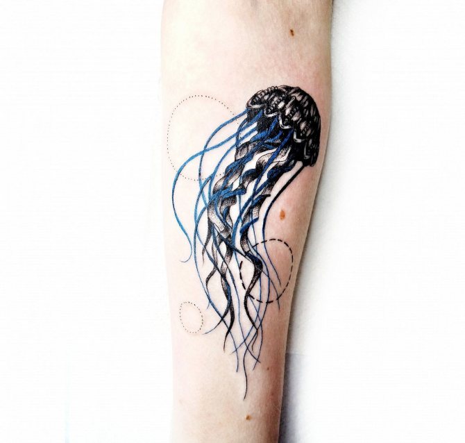 - Una imagen en acuarela queda muy bien. Este trabajo inacabado, que pasa sin problemas a ser un boceto, parece original y artísticamente autosuficiente. Por lo tanto, dicho tatuaje no necesita mayor refinamiento;