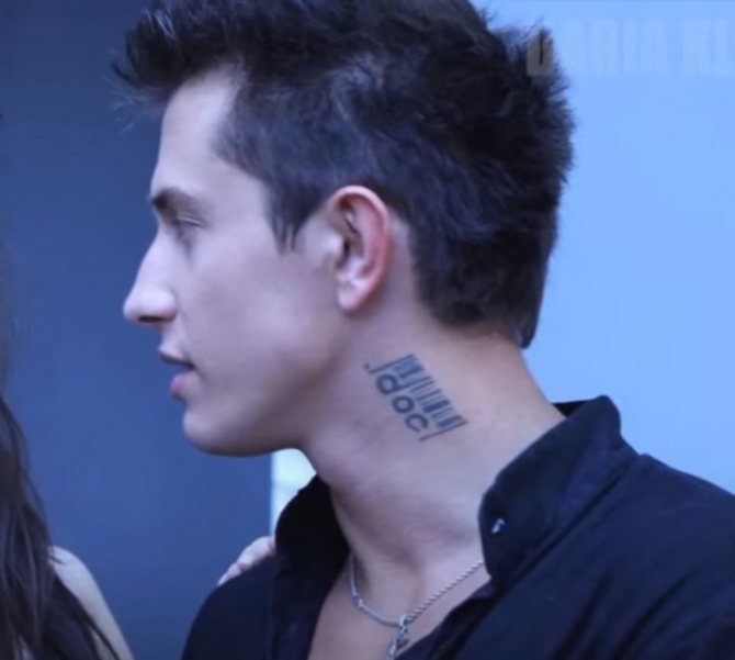 - Rosa. La cantante se ha tatuado su fecha de nacimiento en un código cifrado en el cuello. Por cierto, muchos artistas, tanto del género musical como de los juegos, los tienen colocados en esta parte del cuerpo. El artista también tiene el día del lanzamiento del álbum y algunos otros datos.