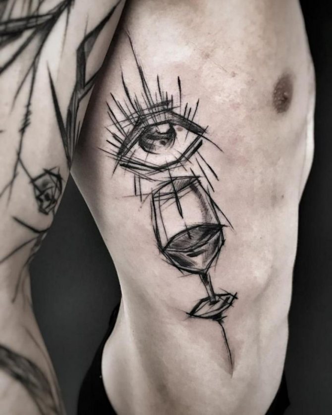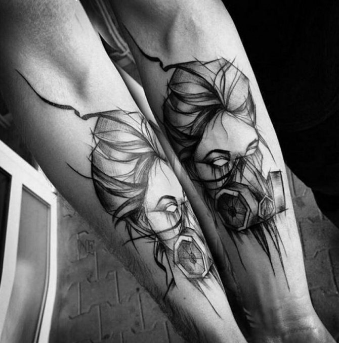 - El dibujo en el estilo de boceto puede ser una adición exitosa al tatuaje en el estilo japonés. En este caso, el artista podrá ejercer plenamente su imaginación, el vuelo del pensamiento creativo;