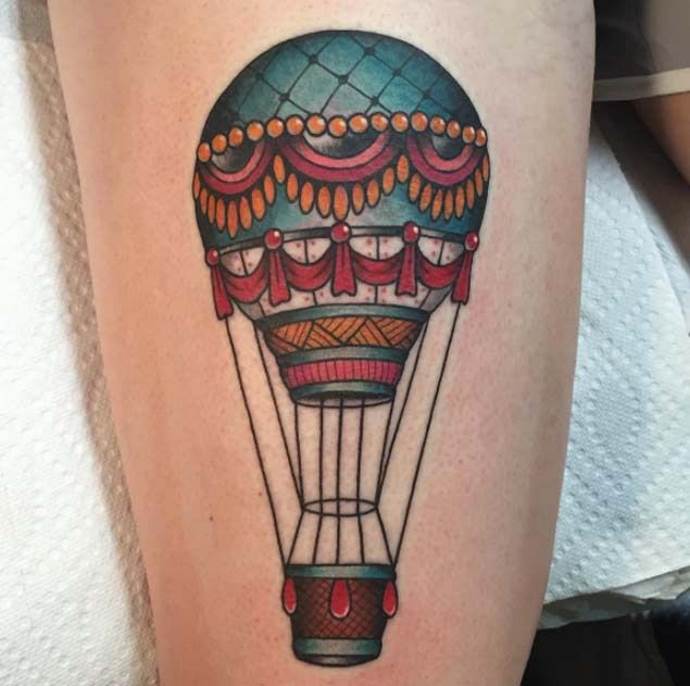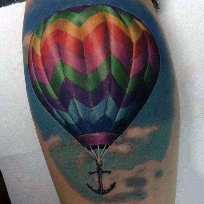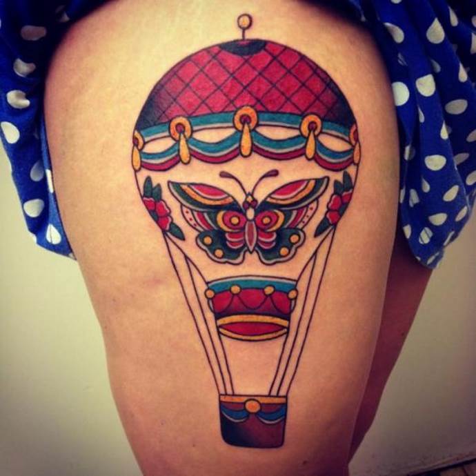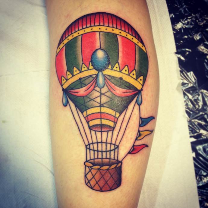 Un tatuaje realista de un globo aerostático indica una disposición al riesgo. Una persona con este símbolo en su cuerpo debe estar preparada, como un globo, para "despegar" y emprender un viaje peligroso.