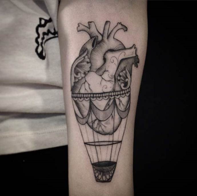 Tatuaje de corazón de globo cicatrizado