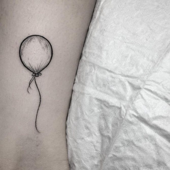 En el caso de las niñas, el tatuaje del globo se caracteriza por la ingenuidad y la curiosidad infantiles. A menudo, el sexo débil elige globos en forma de corazón. Añadiendo una cadena con el nombre de una persona importante o una fecha memorable. A menudo, este globo es sostenido por personajes de dibujos animados, que subrayan la sinceridad de la portadora y su creencia en los milagros.