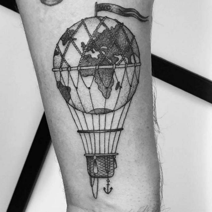 El globo queda muy bien en casi cualquier parte, pero los lugares más exitosos son los hombros, los antebrazos, las pantorrillas y las caderas. Los trabajos a gran escala con muchos detalles son adecuados para colocarlos en el lateral o en la espalda. En este caso, el globo puede formar parte de todo un cuadro con tu cuerpo como lienzo. Los tatuajes más pequeños quedan bien en el cuello y las muñecas. Este tipo de obras no se caracterizan por el detalle minucioso de los elementos, pero pueden ser llamativas y notables.