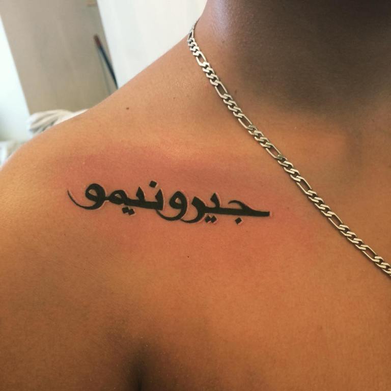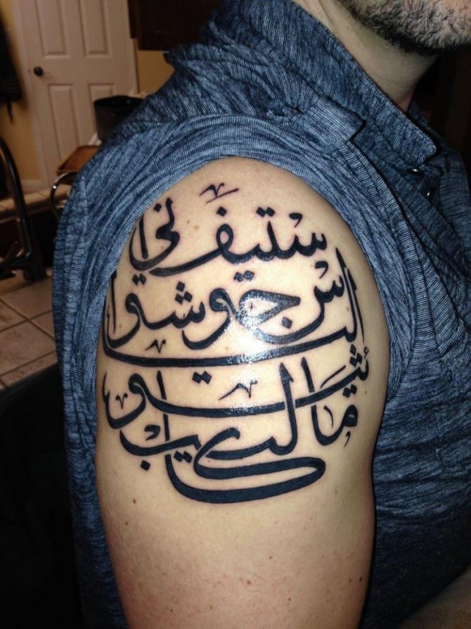 Una inscripción árabe es una delicada ligadura de escritura que se asemeja a un patrón exquisito. Es uno de los diez alfabetos más bonitos del mundo. No es de extrañar que los tatuajes musulmanes no sólo sean populares entre los seguidores del Islam.