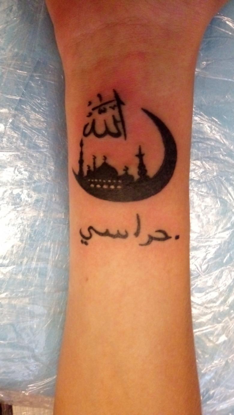Personajes. La mayoría de los símbolos que se suelen tomar como diseño de tatuajes están estrechamente relacionados con la religión islámica. De ahí que muchos seguidores del Islam aborrezcan este tipo de arte corporal. La luna creciente, la mano de Fátima, la imagen de una mezquita, etc. son los tatuajes musulmanes más populares entre quienes alaban al Todopoderoso o simplemente no tienen prejuicios.