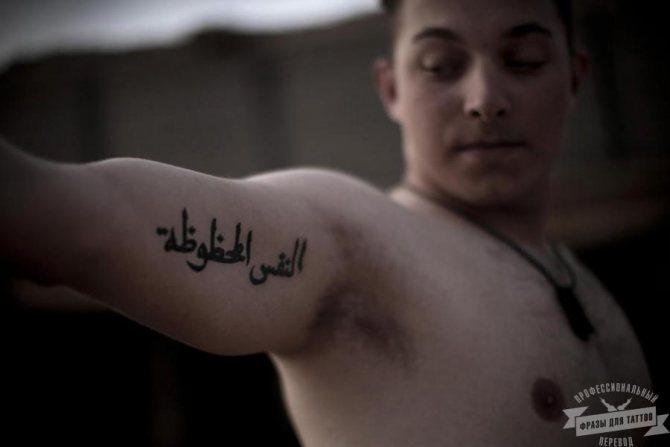 En la antigüedad se creía popularmente que una imagen en el cuerpo puede proteger a las personas de las malas acciones, por lo que en el curso especial fue el dibujo de los símbolos religiosos, e incluso la imagen de una mezquita. En la interpretación moderna, los tatuajes árabes se representan en forma de inscripciones o símbolos. En la interpretación moderna, los tatuajes árabes tienen forma de inscripciones o símbolos.