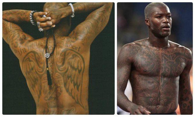 El futbolista francés de origen marfileño es recordado por los aficionados al fútbol no sólo por su extraño peinado, sino también por su ilimitada afición a los tatuajes. El jugador es considerado, con razón, uno de los más tatuados del mundo. Tiene todo tipo de dibujos e inscripciones en su cuerpo. El francés tiene las alas de un ángel en la espalda, mientras que los brazos del delantero llevan "mangas".