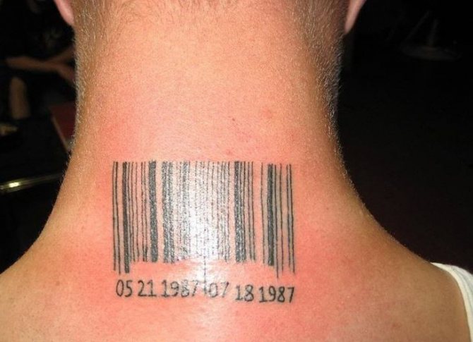 Una imagen corporal con un código de barras puede parecer bastante extraña. Pero a veces se convierte en una elección tanto para hombres como para mujeres. Dicho tatuaje apareció no hace mucho tiempo y ya ha conseguido ganar adeptos.