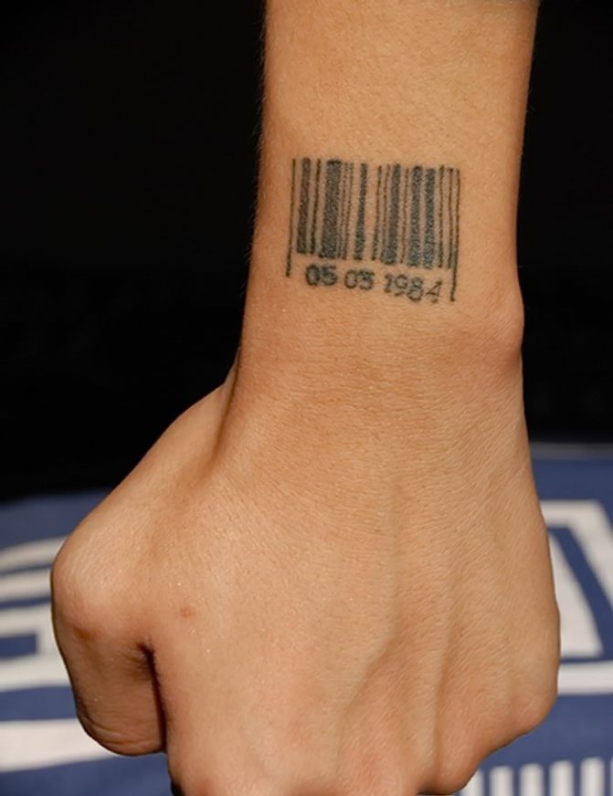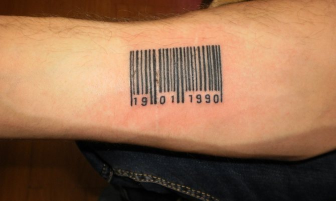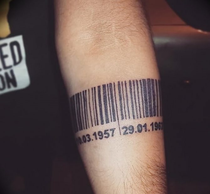 Durante la aplicación del tatuaje de código de barras, se suelen utilizar números de la suerte o que cambian la vida. A veces se elige como imagen la fecha de nacimiento.