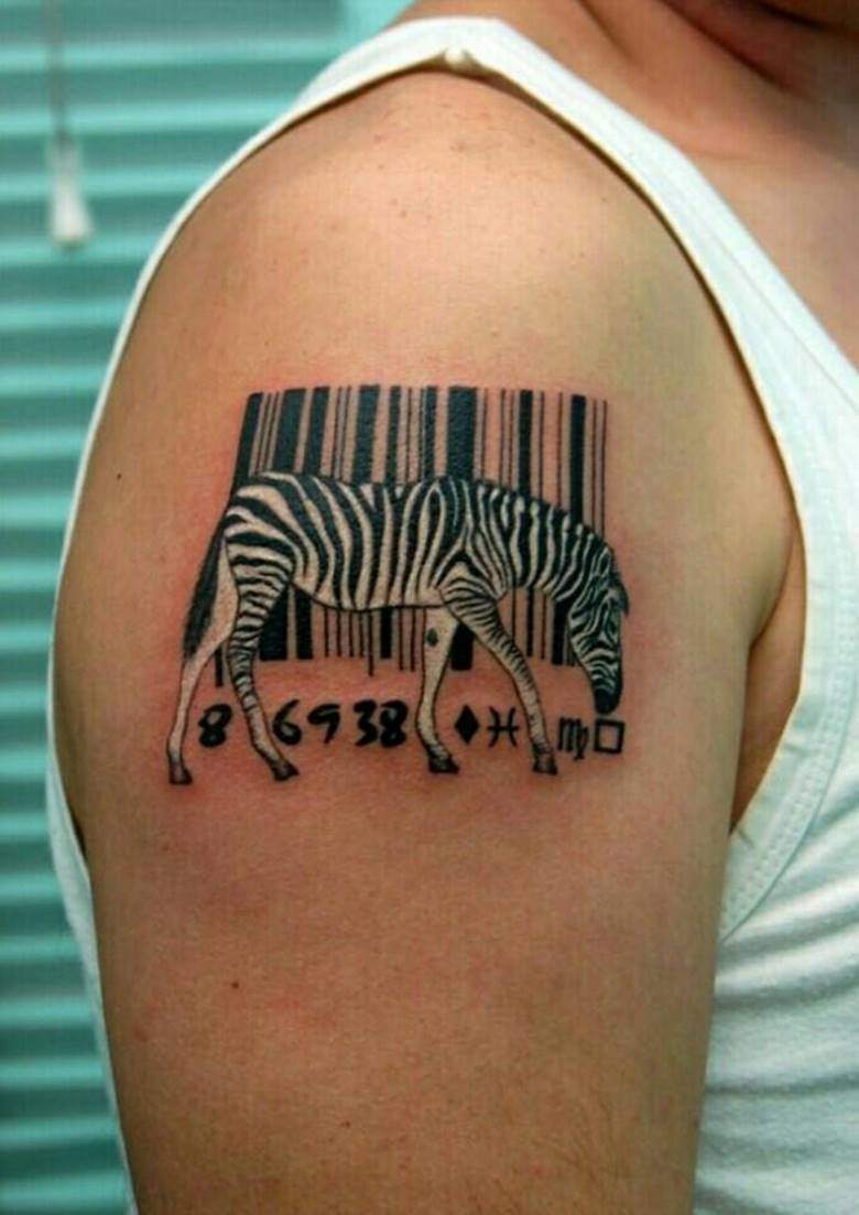 El tatuaje con la imagen de un código de barras en el cuerpo de un hombre fuerte se hace muy pocas veces como imagen corporal original. La opción más común para un miembro masculino del sexo fuerte es protestar en desafío al statu quo.