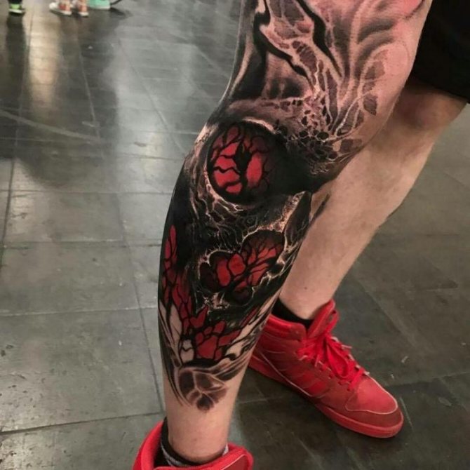 Sketš tuleb valida kõiki tegureid silmas pidades, et see sobiks kandja elustiiliga. Oluline roll on õigel värviskeemil ja kohas. Õigesti valitud ja teostatud tätoveering jalal rõhutab mehe omadusi ja aitab enesekindlust.