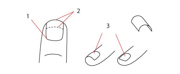 - Küüs algab sõrme ülemise sõrmefaliidi keskelt.