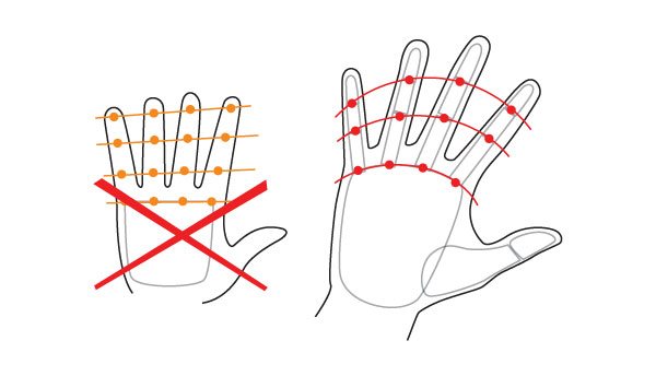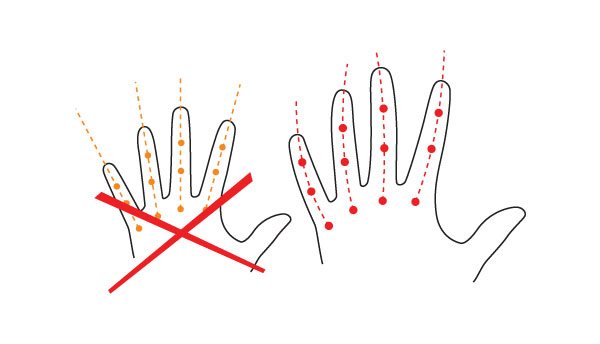 Ka sõrmed ei ole sirged, vaid kergelt P3 ja P4 vahelise ruumi poole kaldu. Järgides neid teadmisi vaid natuke, annad sa juba oma käele loomuliku välimuse.