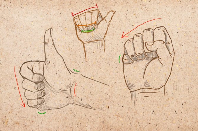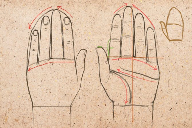 Sõltuvalt inimese käest varieerub ka liigeste asukoht sõrmedel. Selleks, et visualiseerida, kus liigendid peaksid paiknema, võite joonistada kaks kumerat joont, mis tulevad pöidlaküüntest välja. Kui lisate nendesse kohtadesse kortsud, näevad käed väga loomulikud välja.