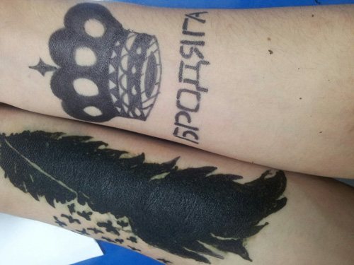 - Asetage valmis šabloon puhastatud ja rasvatustatud nahapiirkonnale ning katke tühjad kohad värvimisainega. Mida paksem on kiht, seda heledam on tätoveering.