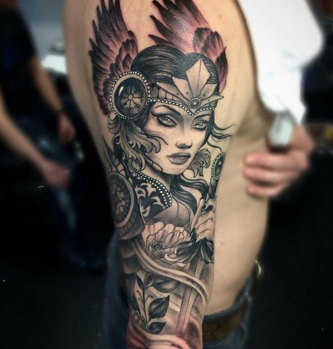 Valküüria tätoveering näeb tavaliselt välja nagu naissõdalase kujutis. Kuid see ei ole ainult skandinaavia sõdalane, tegelikult on sõna "Valküüria" olemas ka iidses slaavi kultuuris.