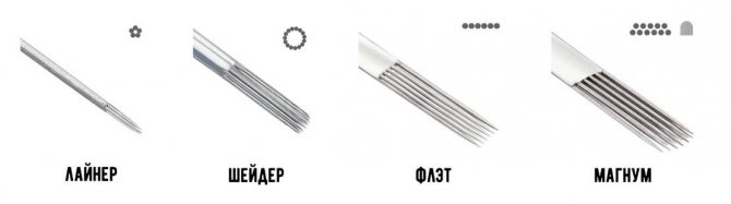 See, kui palju värvi kantakse naha alla, määrab lõpptulemuse: värvi sügavus, joonte selgus. Kui te vaatate tähelepanelikult nõela, saate aru, millised on nende sortide omadused.