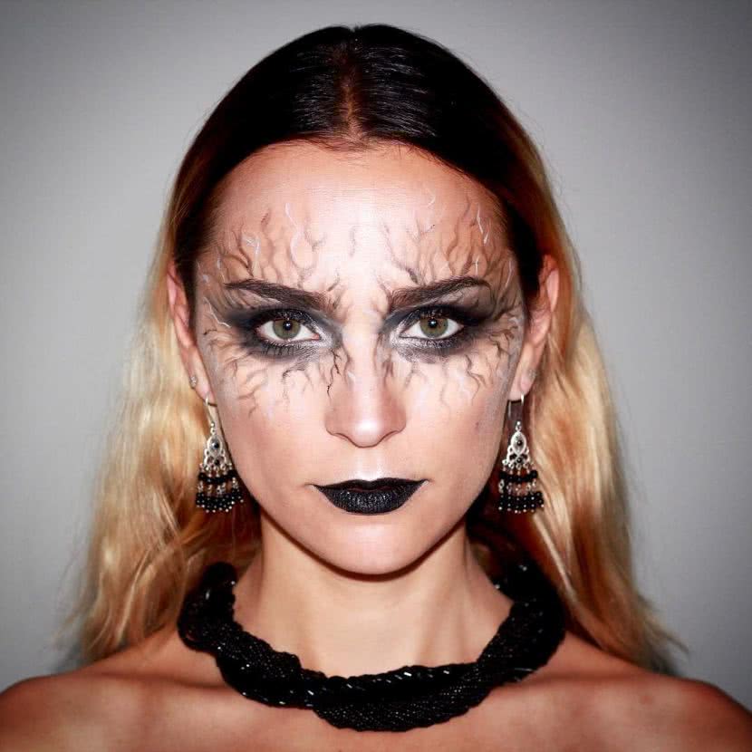 Värv peaks olema veidi intensiivsem alumise silmalae servade lähedal. Kasutades jumestuskreemi, mis on kaks tooni tumedam kui teie loomulik värv, tõmmake kaks õhukest joont silmalaugude juurest põsesarnade juurde. Silu aluspõhi kergelt pintsliga. Seda meiki soovitatakse kanda mustadel pruutidel, vastsündinud zombidel või kannatavatel vampiiridel.